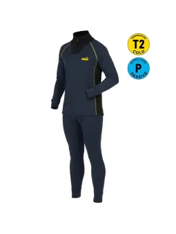Uue põlvkonna kahekihiline materjal pakub mugavust erinevatel aktiivsustasemetel. Alumine kiht on tihedam ja imab paremini niiskust, pealmine kiht on paremini hingav ja kerge niiskusjuhtimisega. Tõmblukk. Lamedad õmblused. Elastne vöökoht.