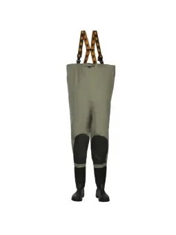 Забродный полукомбинезон Premium произведён из высококачественной, очень выносливой к механическим повреждениям ткани Plavitex Heavy Duty (ПВХ/ полиэфир) плотностью 700 g/m2. Дополнительные укрепления на коленях увеличивают срок стирания ткани, а также уберегают от повреждений. При производстве забродного полукомбинезона Premium используется новый метод крепления ленты и резины шлевок для более комфортной носки, а также обувь высокого класса.